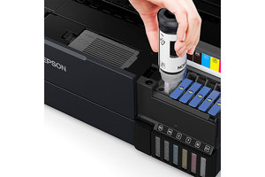 사진 출력에는 염료 잉크를 문서 출력에는 안료 검정 잉크를 사용하도록 설계하여 높은 색재현력을 요구하는 사진과 우수한 텍스트 선명도와 내수성이 필요한 문서 모두 출력 만족도를 높였습니다. 또한, 염료 검정 잉크와 회색 잉크의 조합으로 흑백 사진의 품질을, 안료 검정 잉크를 통해 아트지 표현력을 향상시켰습니다.