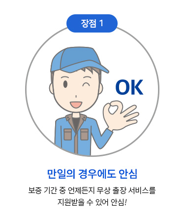 보증기간 동안 최우선 출장 서비스를 지원합니다. A/S 신청 및 기타 고객문의 창구를 일원화하여 신속·편리한 서비스를 제공합니다.